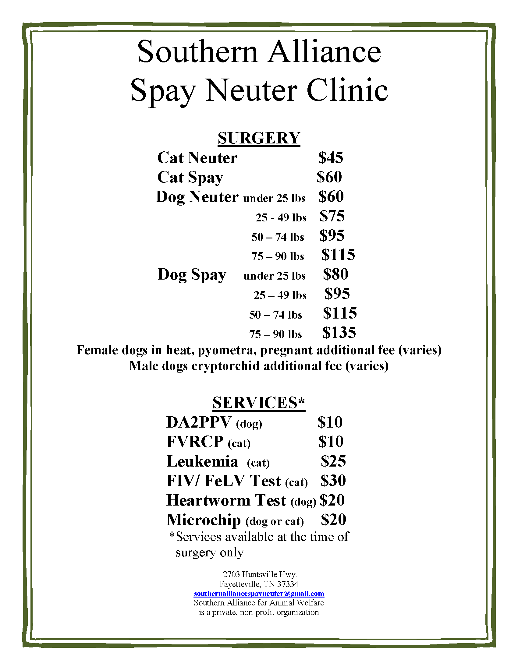 When you get your pet spayed or neutered with us, we can add in a microchip implant for an additional $20